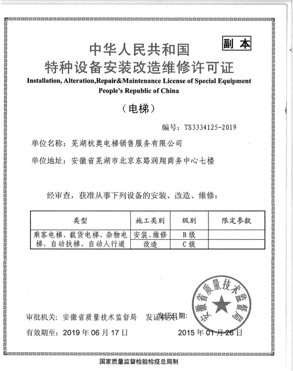 安徽杭奧電梯