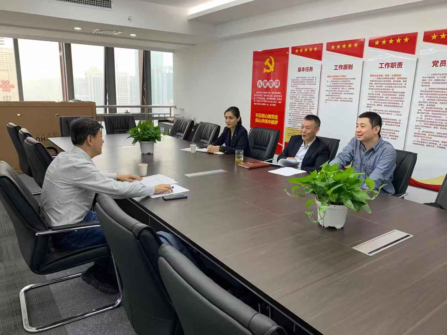 11月13日下午,市委組織部人才處鄧處長來我公司考察調(diào)研。趙文勝董事長、王晗副總經(jīng)理、鄭淼經(jīng)理陪同參觀座談。雙方就如何更好開展人事工作,共同商討發(fā)展前景,深化共贏合作進行交流。鄧處長指出,人才政策、創(chuàng)新機制都是下一步工作的重點。按照黨的十九屆五中全會關(guān)于人才工作的新要求新理念,就我司人才工作提出了許多切實可行的意見和建議,為高起點謀劃、高標準推進人才工作進一步開闊了思路。